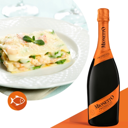 この料理には、プロセッコ DOC トレヴィーゾ・ブリュットの軽やかでフレッシュな泡とリンゴやアカシアの香りがぴったり。魚介と野菜のやさしい甘みを引き立ててくれます。