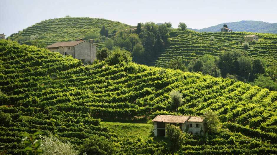 グレーラ種(プロセッコ用のぶどう品種)の栽培が行われている地域は、イタリア北東部、ヴェネト州とフリウリ=ヴェネツィア・ジュリア州の間に位置し、総面積は24,000ヘクタールに及びます。この地域には13,000の生産者と375のワイナリー(セラー)が存在しています。
